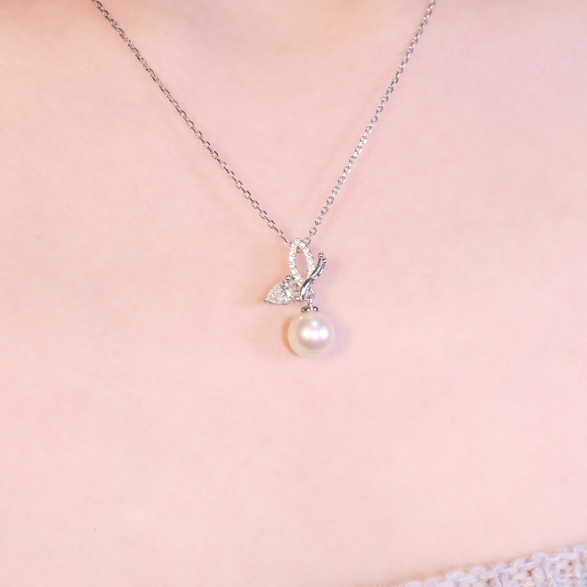 溫柔氣質型:蝴蝶珍珠純銀項鍊