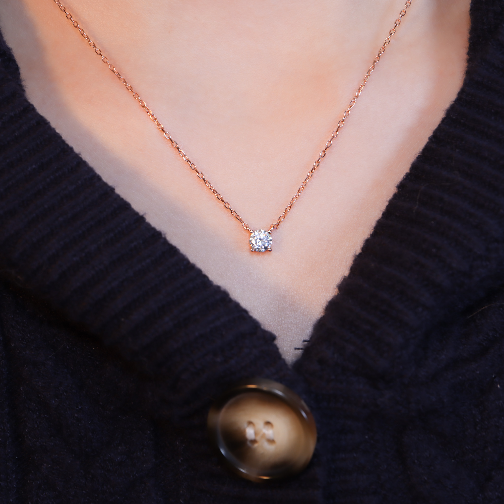 務實低調型:經典單鑽(莫桑鑽)純銀項鍊